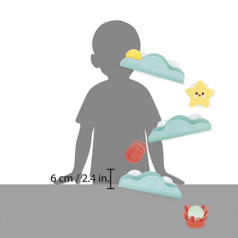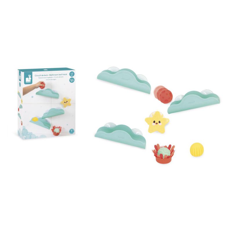 ¡Todo listo para la hora del baño! Descubre nuestro bonito circuito de baño marino compuesto por 3 toboganes, 3 bolas sensoriales, 1 estrella giratoria y una pequeña anémona que recoge la bola a su llegada. Para despertar la curiosidad y estimular el tacto, las 3 bolas tienen una función sensorial. Los accesorios están fabricados con paja de trigo. Ideal para desarrollar la motricidad fina. Juguete para el baño para niños a partir de 12 meses.