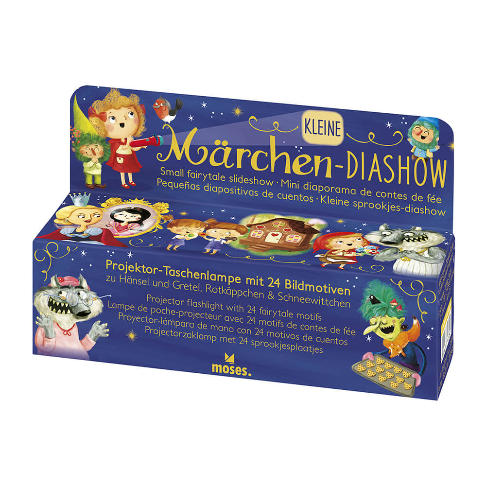 Proyector linterna con 24 imágenes en 3 discos de 8 imágenes cada uno con los cuentos de Hansel y Gretel, Caperucita Roja y Blancanieves.