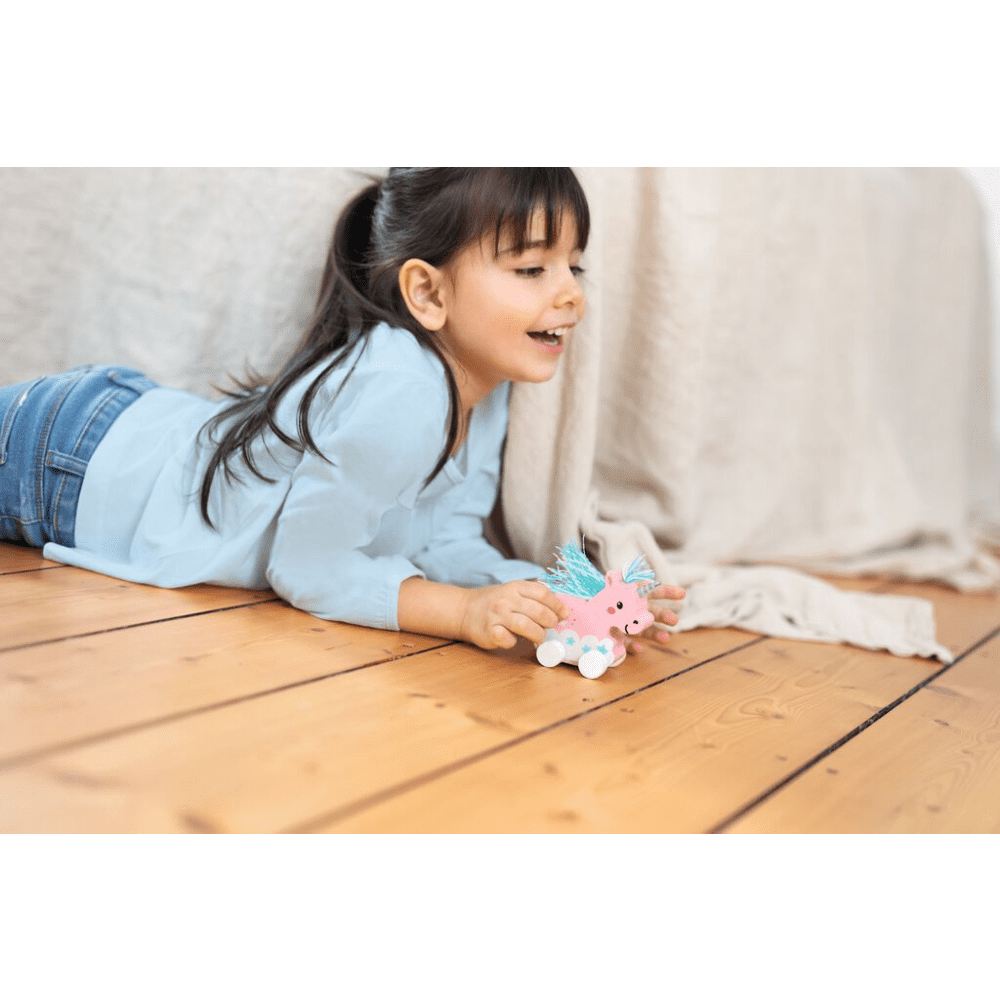 Tire hacia atrás el unicornio, suéltelo y observe como corre.